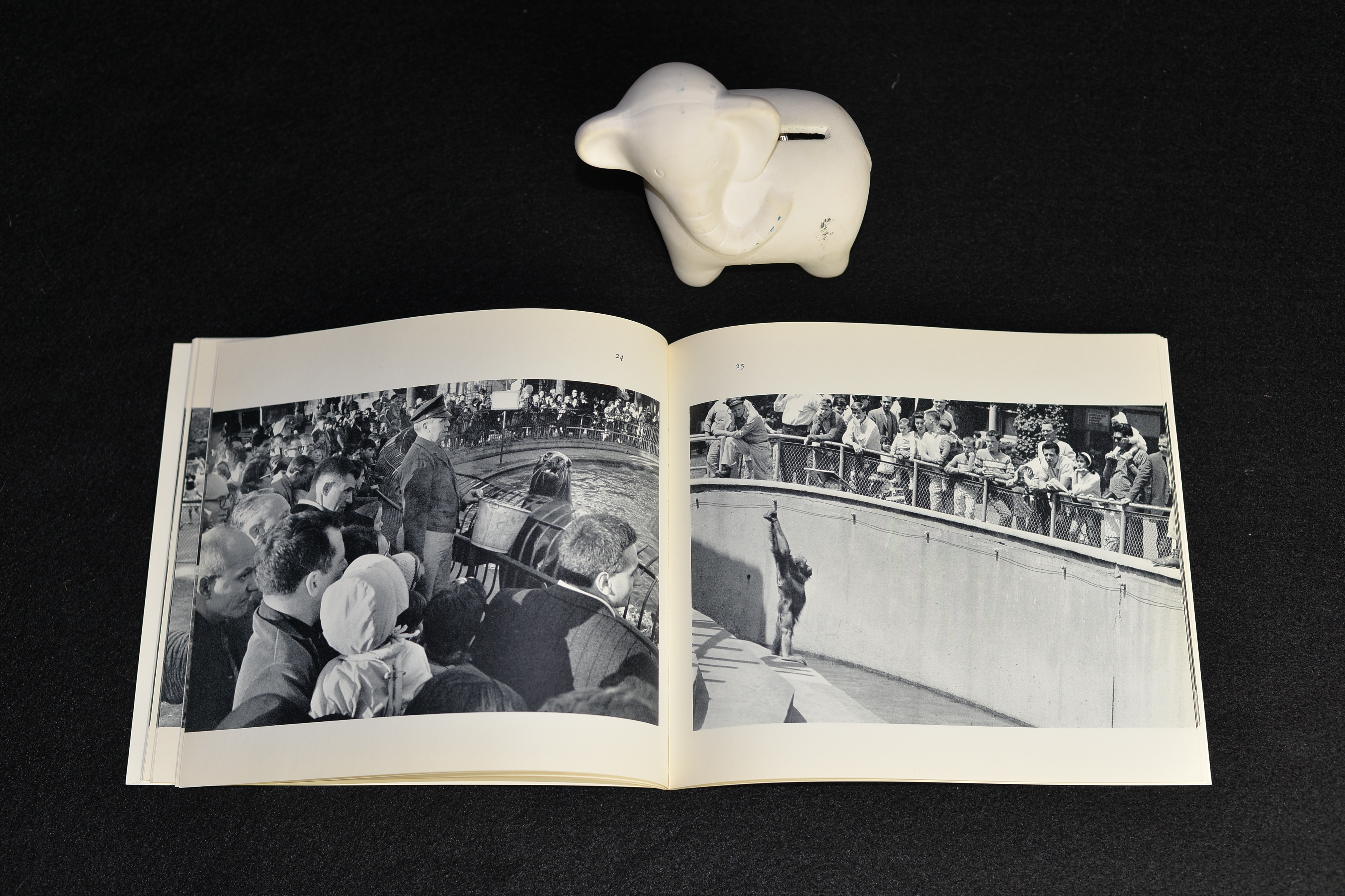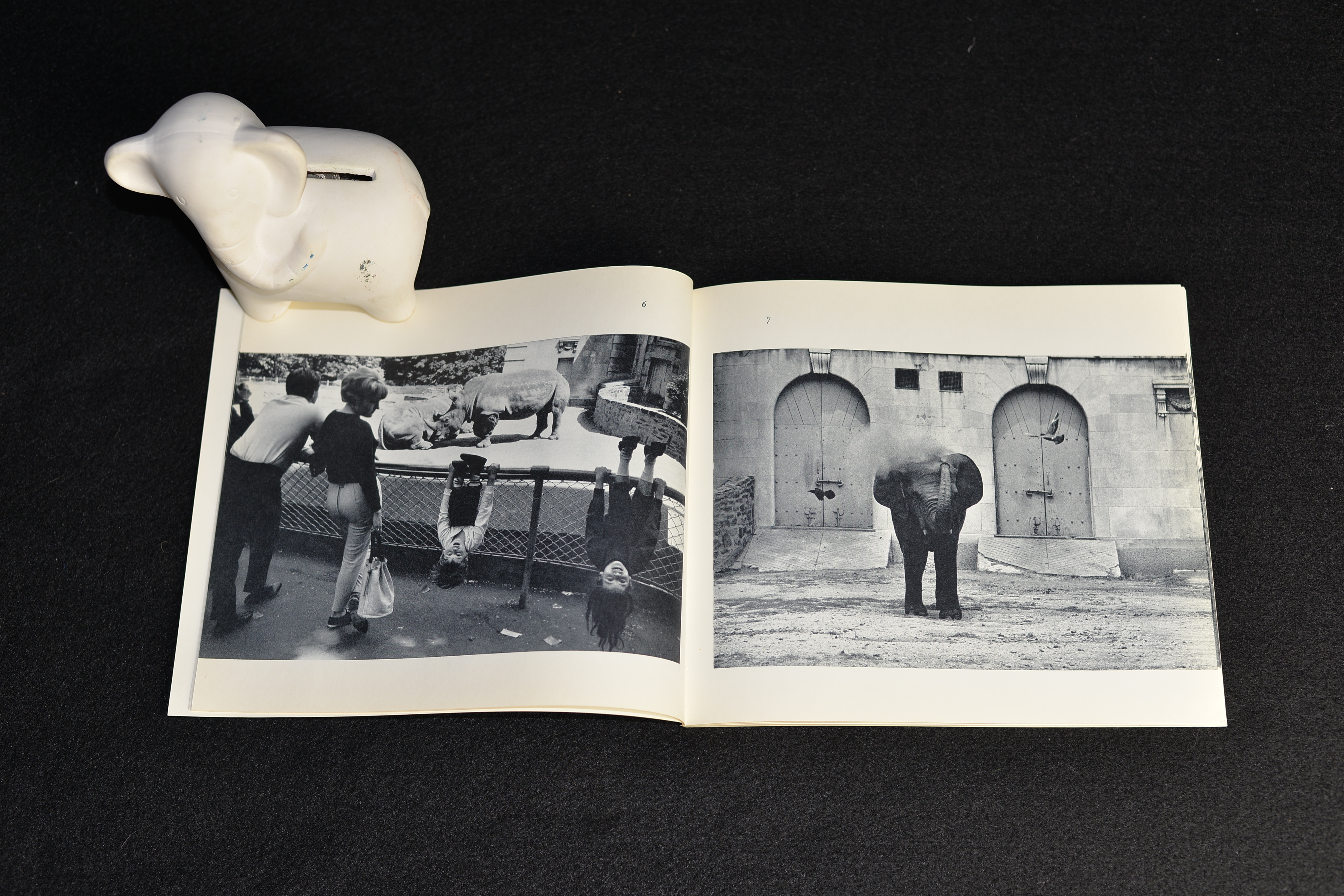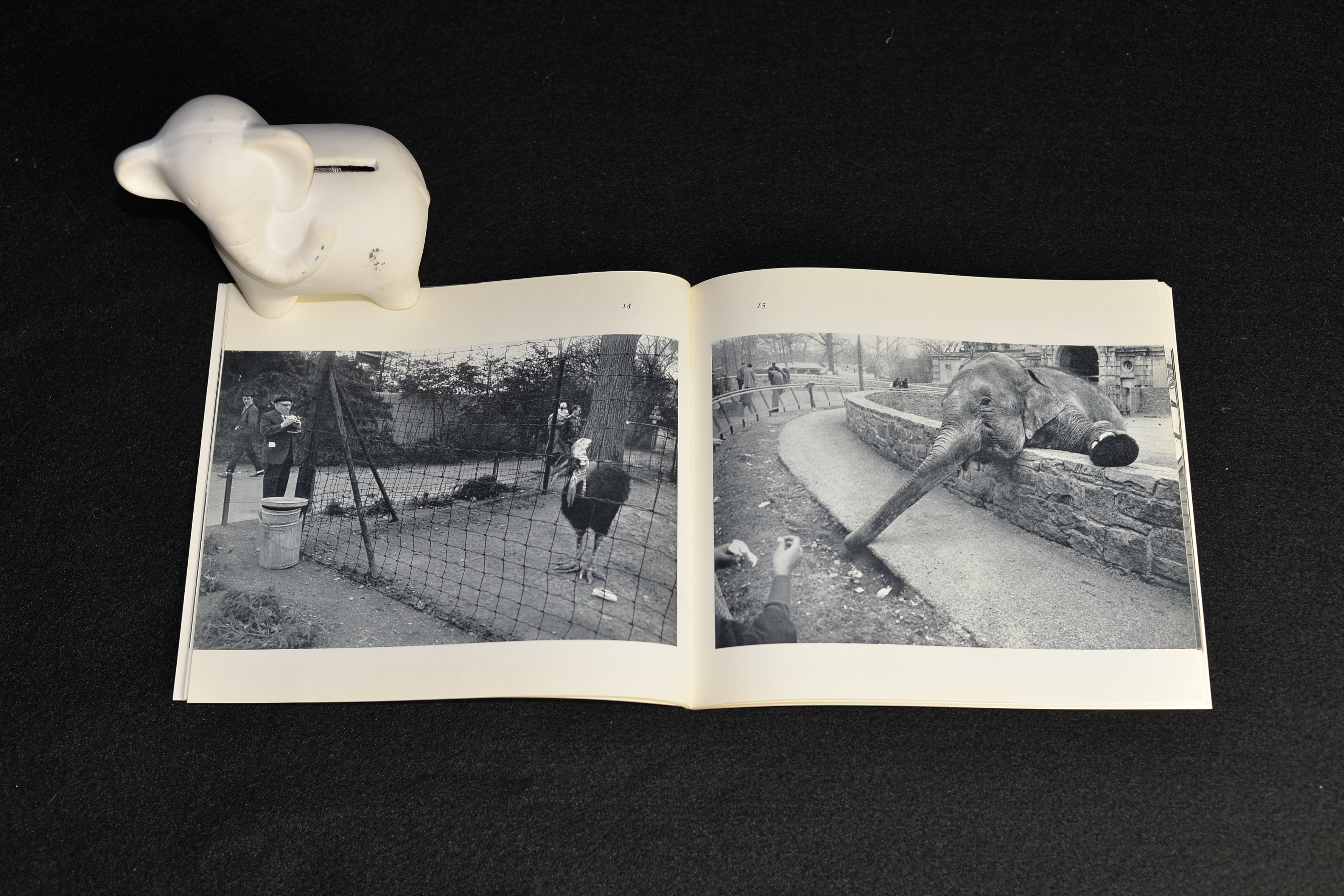 As John Szarkowski comments in his text accompanying the images, Winogrand’s zoo is a grotesquery, where both visitors and animals stare at each other through the bars, exhibiting their ridiculous manners. The elephant pictures in particular, reveal unflattering scenes of animals humiliating themselves for a bit of food. As Szarkowski says, this book challenges our common understanding of an entertaining visit to the zoo.
