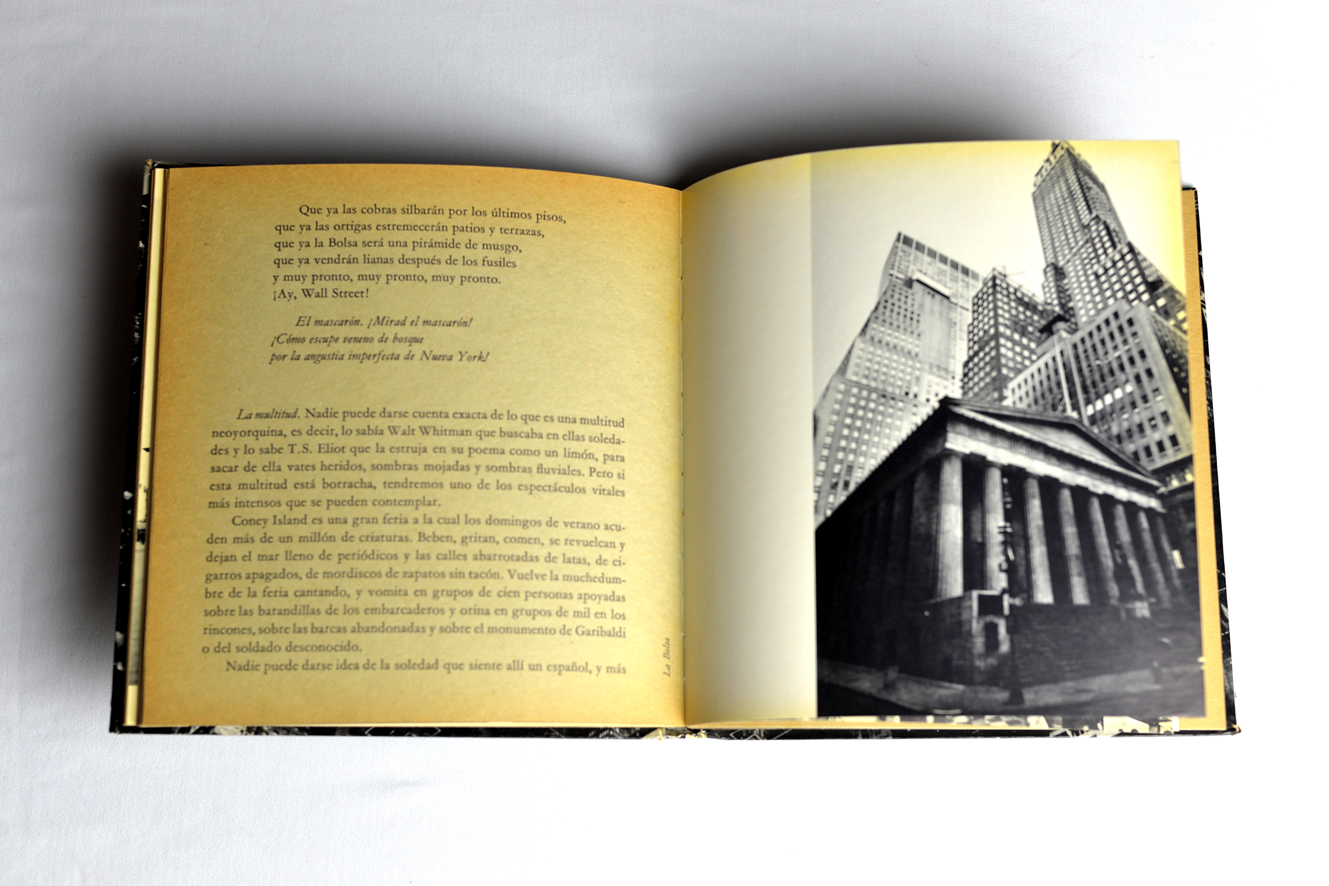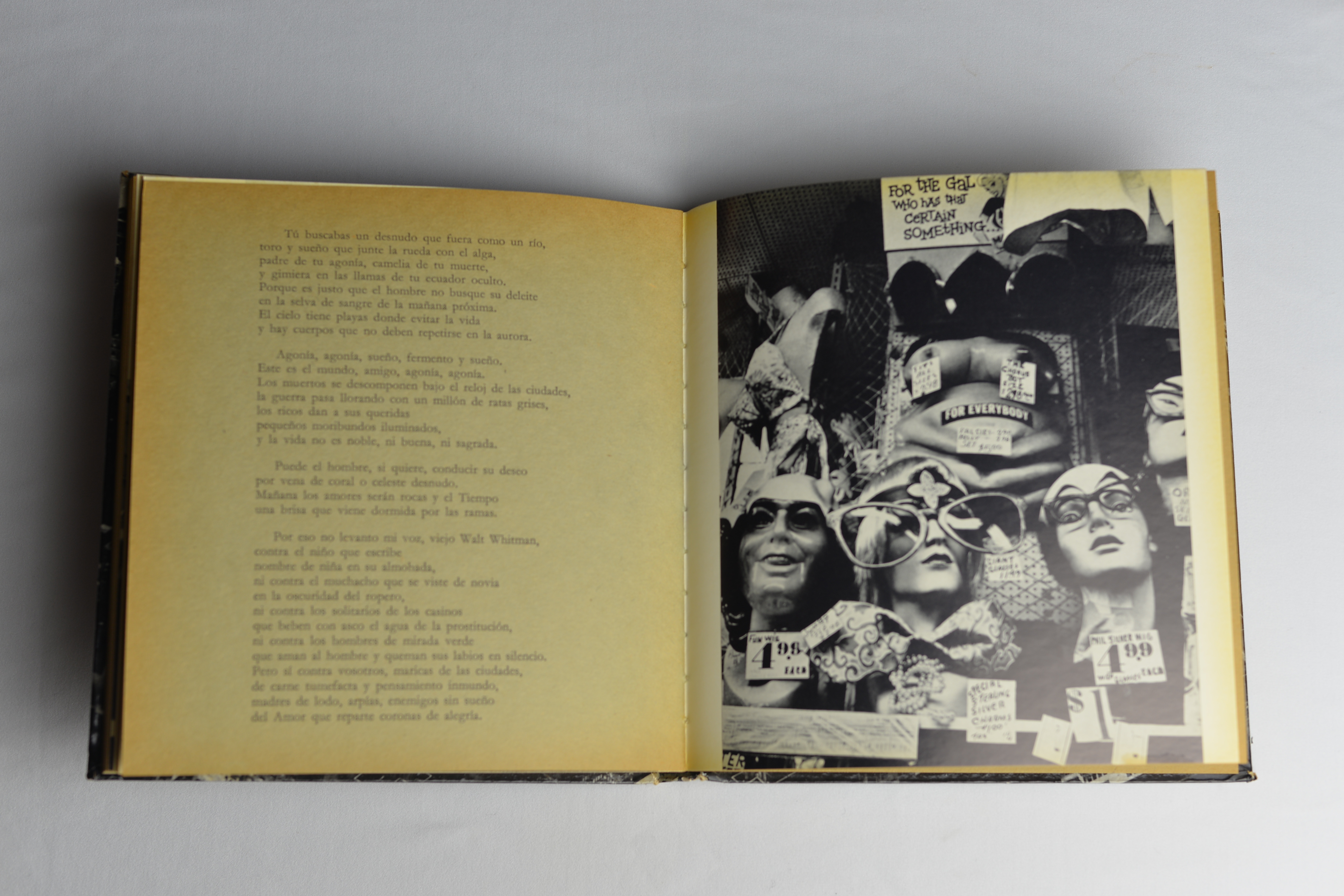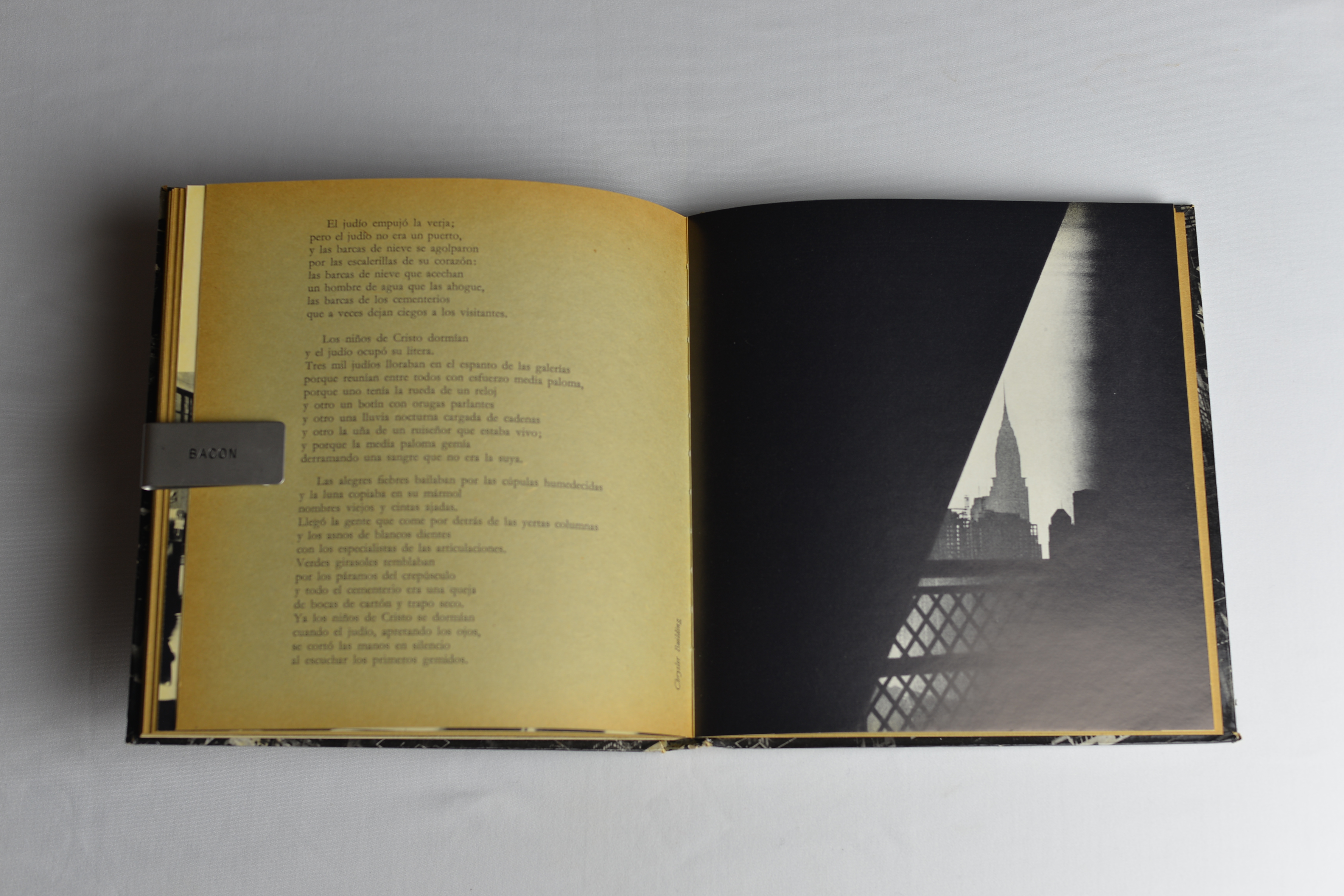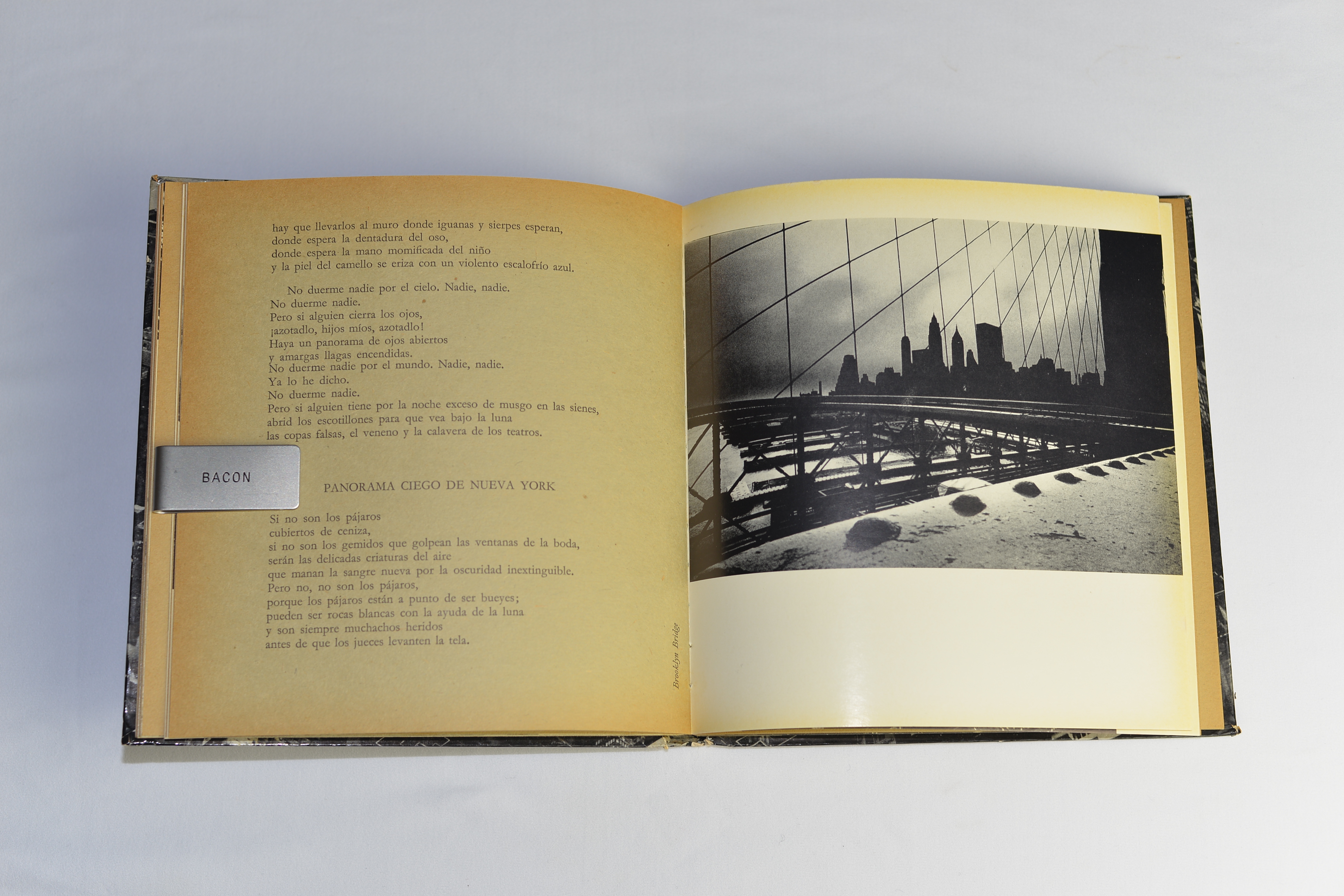 In 1966, the Lumen publishing house prepared a new edition of Lorca’s poems, adding one previously unpublished text and complementing the poems with photographs. The text was a lecture Lorca gave when he was back from New York, which some consider an explanation of the context for his New York poems. As Lorca said: this is not really a poet in New York, but rather New York in one poet.