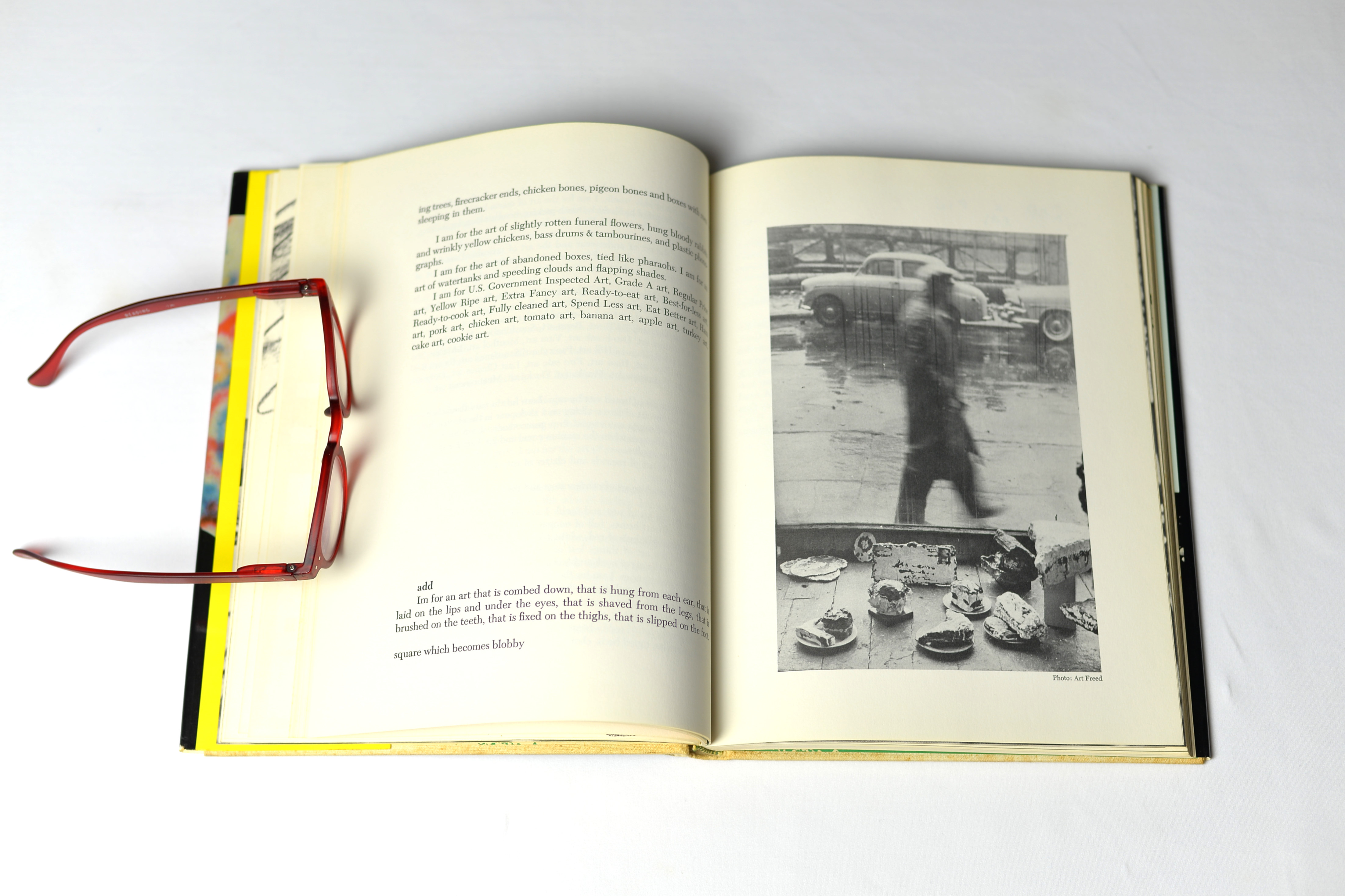 Originally, The Store was meant for Oldenburg to sell his sculptures made of painted plaster – pies, burgers, and other comestibles and garments, representations of mass consumption goods. But soon after the Winter of 1961, as documented in this book, The Store evolved and was converted to the Ray Gun Theater, hosting different art events – performances, happenings, theoretical discussions, etc. – which were quite influential in NY art’s world.